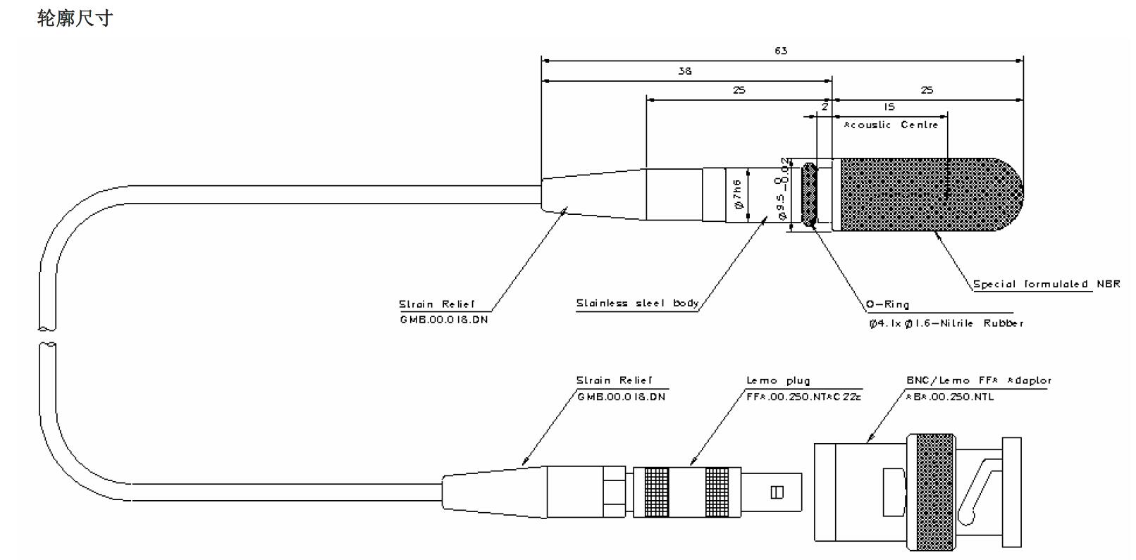 发射灵敏度: 130dB ±3dB re 1μPa/V at 1m at 100kHz